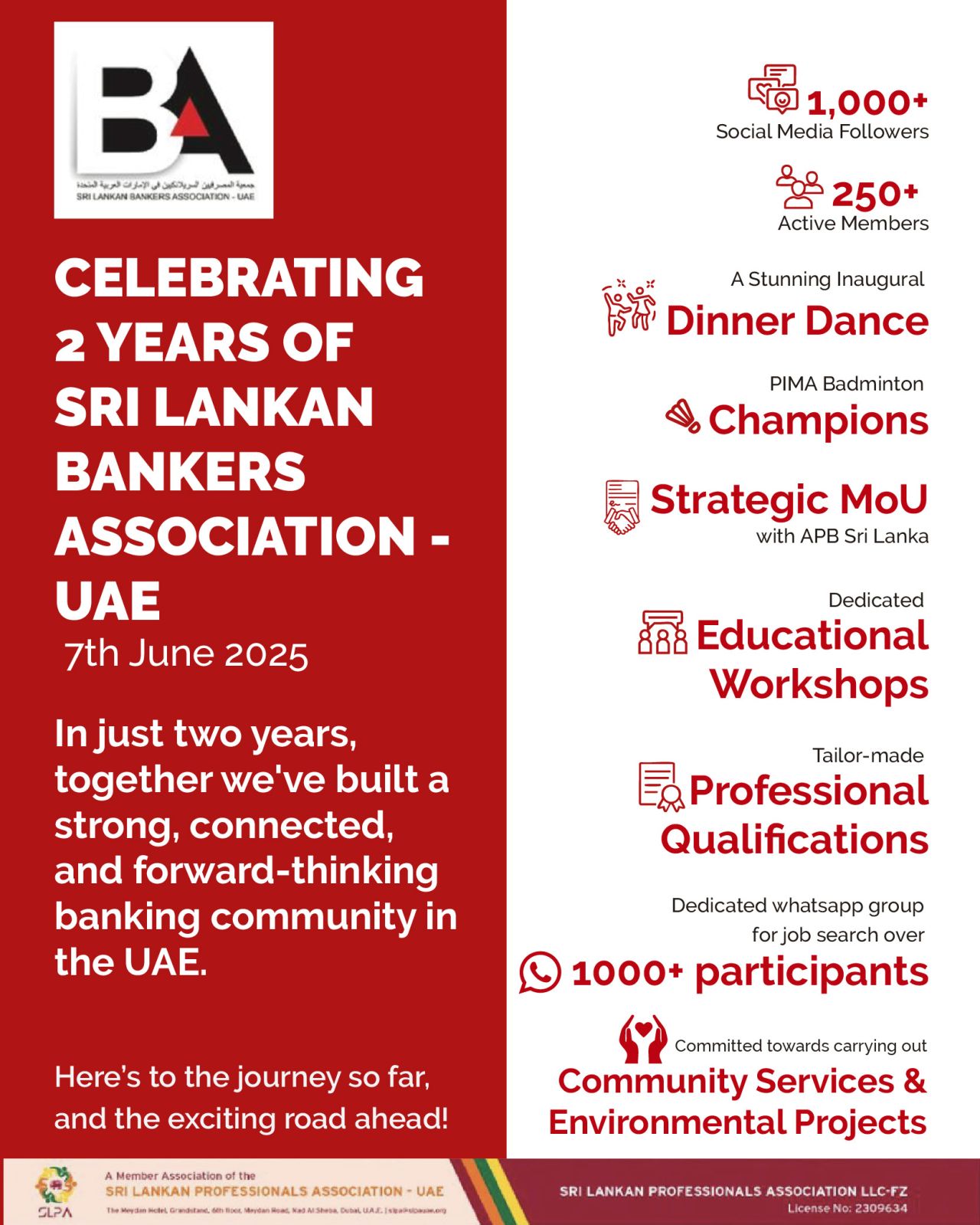 From empowering professionals, building communities and hosting dazzling events, the Sri Lankan Bankers Association, UAE has grown into a dynamic force for connection, progress, and purpose. Our stakeholders and members have been the key to this success, the heart of everything we’ve built together. Here’s to 2 years of impact, and all that’s still to come.
