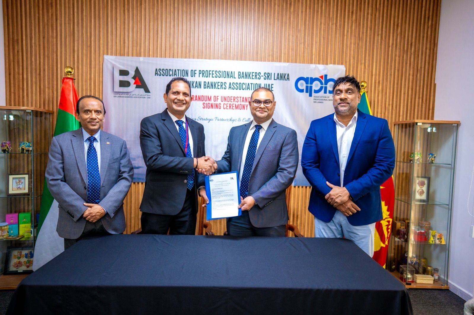 In a landmark move to enhance cooperation between Sri Lankan financial professionals and their counterparts in the United Arab Emirates, the Association of Professional Bankers – Sri Lanka (APBSL) and the Sri Lanka Bankers Association in the UAE (SLBA-UAE) have signed a Memorandum of Understanding (MoU) on 20th May 2025 at the Consulate General of Sri Lanka for Dubai & Northern Emirates, UAE.